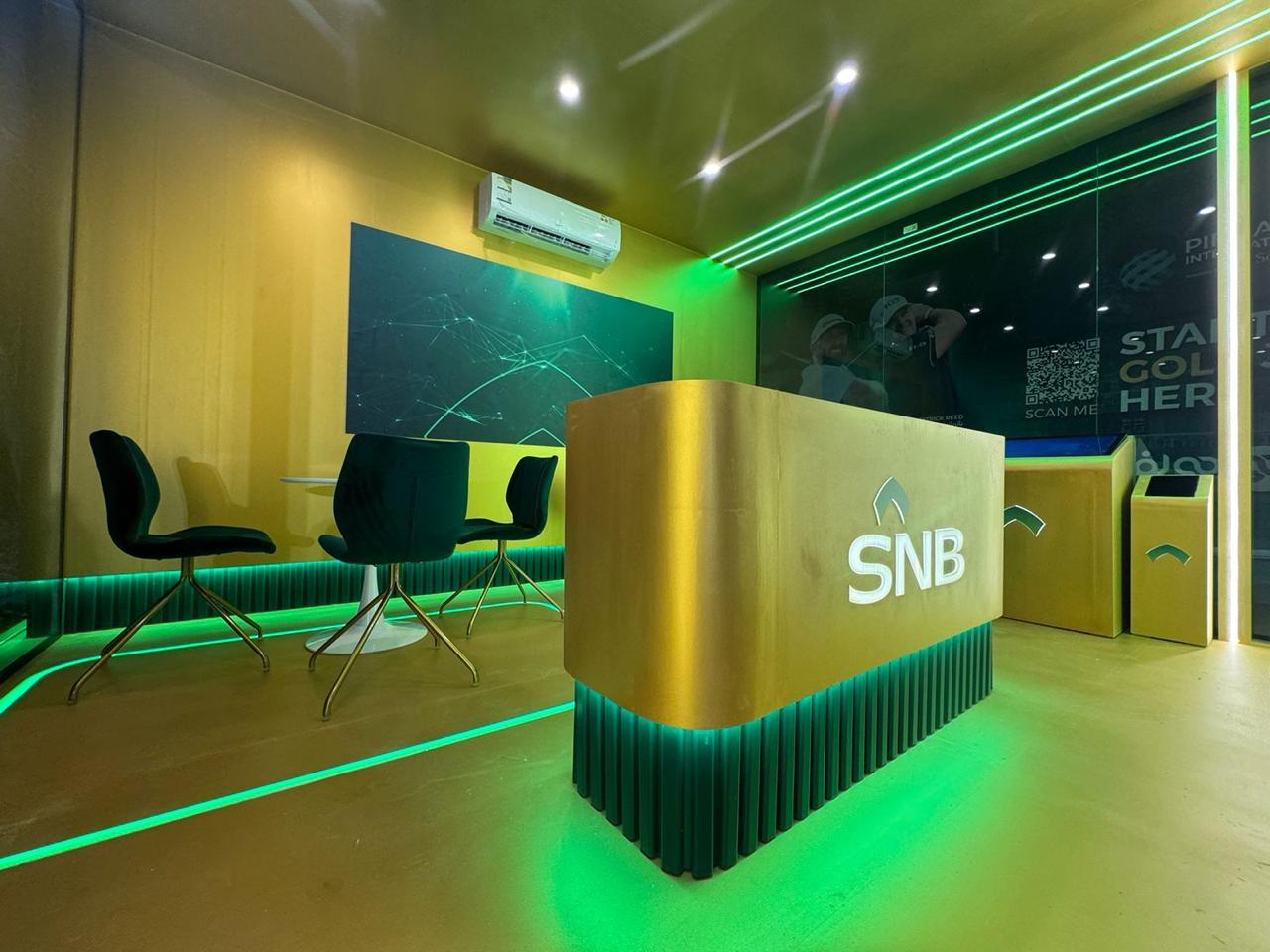 The Al Ahli Bank booth at the golf final in Riyadh features a sleek and professional design combining high-quality wood, metal, and refined paint finishes. The setup offers a stylish and durable space that reflects the bank’s brand prestige while providing an inviting area for guests and attendees. The booth is crafted to enhance the event experience with elegance and functionality.